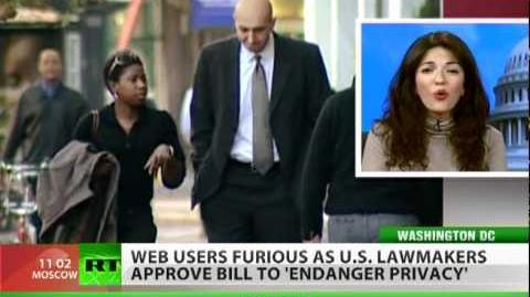 A controversial cyber security Act CISPA is now a step closer to becoming law, following US Congress approval. The process now heads to the Senate, although the White House had already threatened to veto the bill. Internet users slammed the proposal accusing it of breaching American's privacy. Critics point to the fact that the act could eclipse all existing laws protecting people's privacy. RT's Gayane Chichyakyan reports from Washington. And Declan McCullagh, correspondent from C-net news, says it's the most alarming part of the bill.