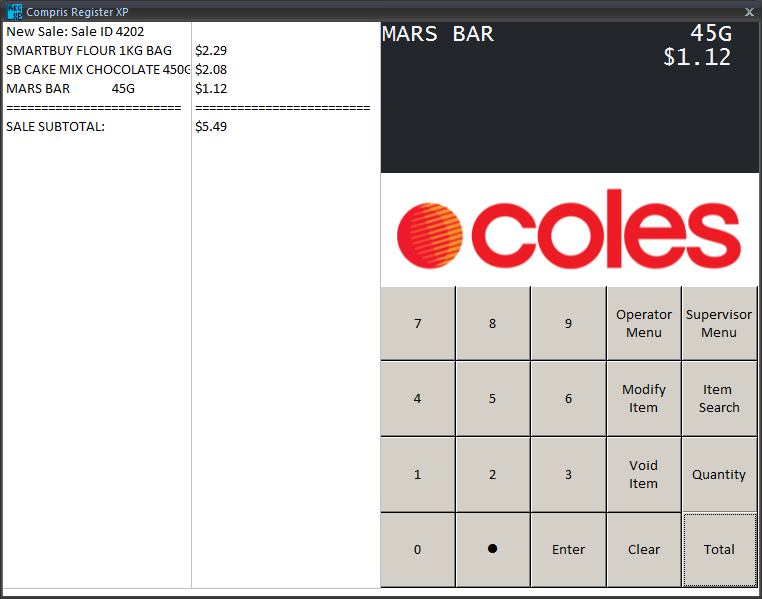 Compris Register XP mock for Coles Supermarkets in Australia.