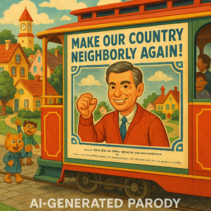 Fred Rogers threw his sneakers in the ring today in the 2028 Presidential campaign. His national campaign tour begins in the Town of Make Believe.